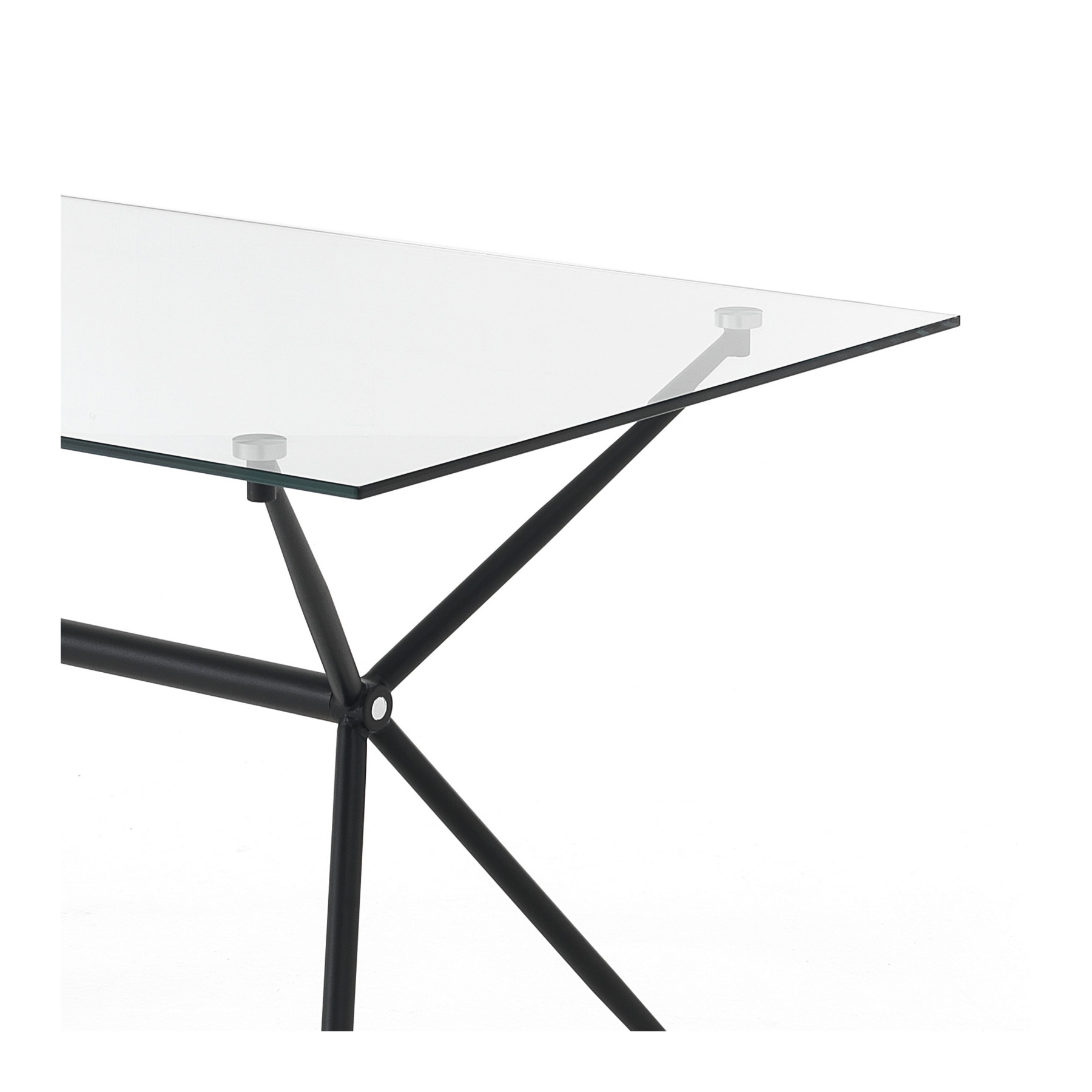Scrivania ideale anche come tavolo da pranzo moderno grazie all’ampia profondità del piano da 80 cm. Le linee leggere e sinuose sono scandite dalle gambe in metallo oblique e dal top in vetro temperato da 10 mm che regalano continui riflessi di luce. Rifinitura della struttura colore nero opaco. Dimensioni: 140 x 80 x 76h cm