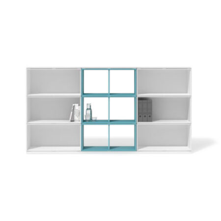 Libreria componibile con finiture laccate, melaminico o metacrilato. Modulo quattro vani quadrati a giorno, finitura melaminico. Dimensioni L. 80 x H. 80 x P. 40 cm. Peso netto : 20 kg.