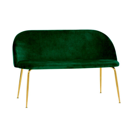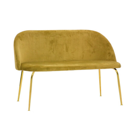 Divanetto 2 posti con struttura in metallo ottonato e rivestimento in velluto in diverse varianti di colore.