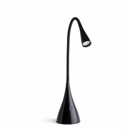 Lampada da lettura realizzata in alluminio, policarbonato, cristallo e silicone, con braccio snodabile. La fonte di illuminazione è LED 3W 4000K 300 Lm con adattatore elettronico incluso. Dispone del sistema Touch Lamp per una facile accensione/spegnimento. Dimensioni alt. 48,5cm, prof. 22cm. Finiture disponibili nei colori bianco e nero