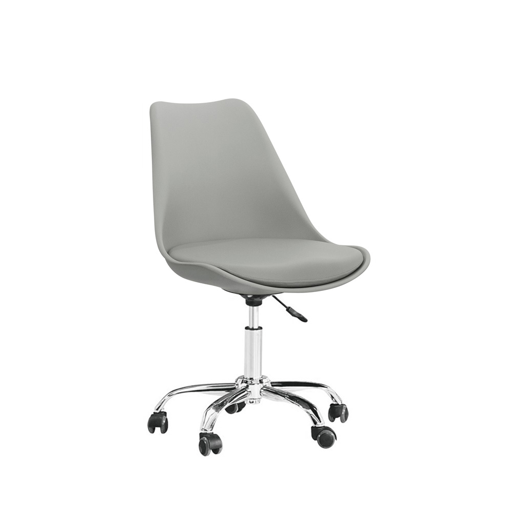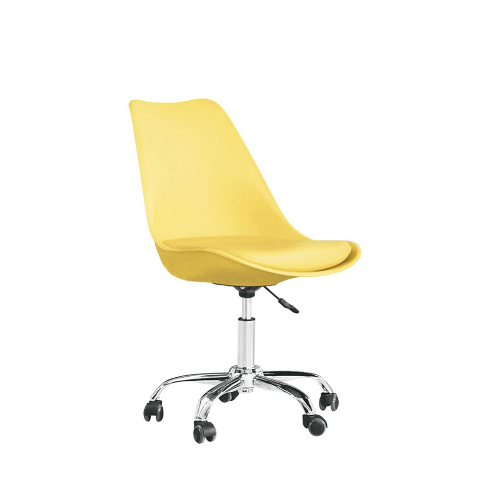 Sedia per ufficio regolabile in altezza con seduta in polipropilene e cuscino imbottito in similpelle. Base in metallo laccato con 5 ruote, facilita il movimento della sedia e offre all’utente un’ottima libertà di movimento. Disponibile nei colori, bianco, bianco con cuscino nero, nero, rosso, giallo, grigio e verde. Dimensioni, altezza 80/89 cm , larghezza 42cm, alt. seduta 43/54 cm.