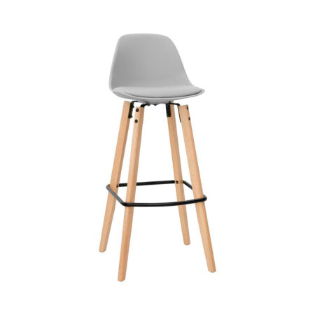 Sgabello in stile scandinavo, gambe in legno di frassino naturale e seduta in polipropilene con cuscino in ecopelle.