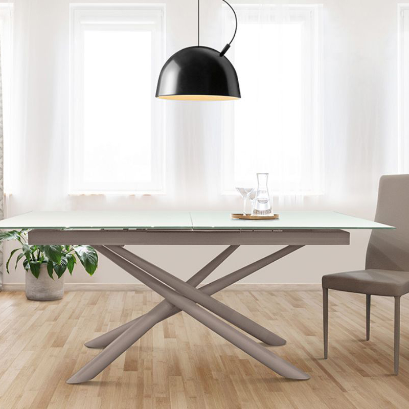 Tavolo rettangolare allungabile 6/8 posti, con struttura in metallo verniciato con variante di due colori, bianco e tortora,